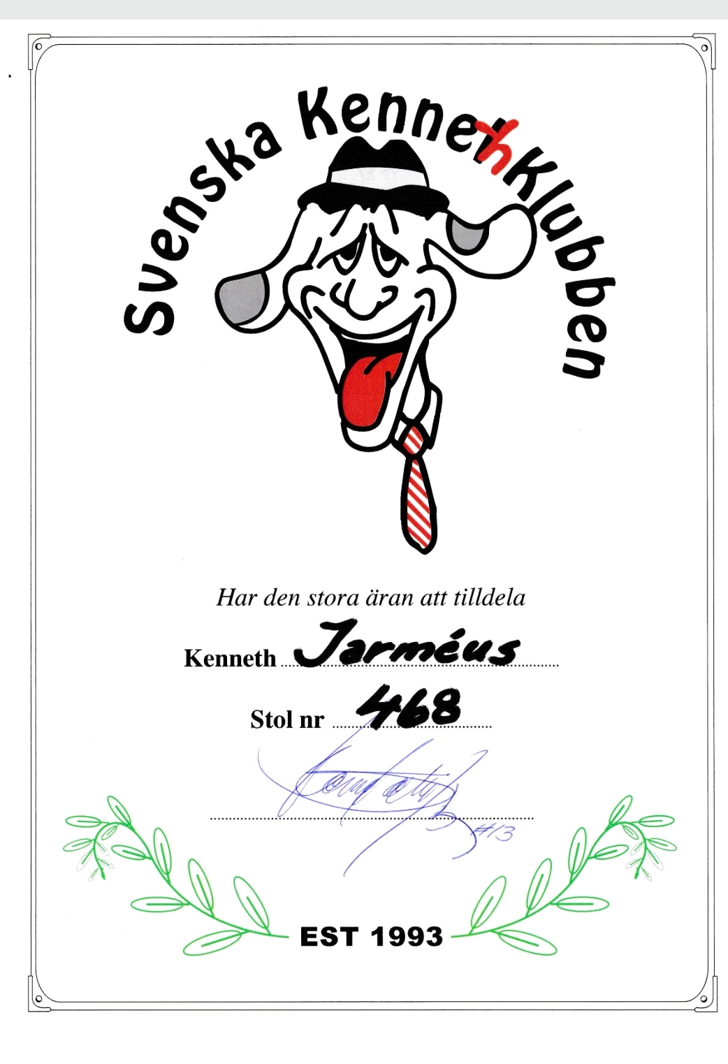 Eftersom jag heter Kennet är jag givetvis med i KennethKlubben, stol nr 468
